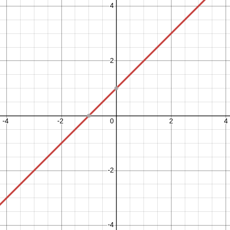 That’s a straight line, traveling at a 45 degree angle. Because every time X goes up by 1, y goes up by 1.